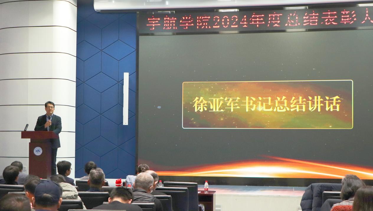 会议最后,由宇航学院党委书记徐亚军作总结讲话,他回顾了过去一年学院教职工不忘初心,坚守立德树人的教育理念,砥砺奋进的工作历程,向学院教职工在多个方面取得的突出成果表示祝贺。展望2025年,他强调宇航学院要着力走出一条特色鲜明的高质量发展之路,为航天强国建设再立新功,并代表学院领导班子祝愿宇航学院全体教职工在新的一年里身体健康、工作顺利、阖家幸福。