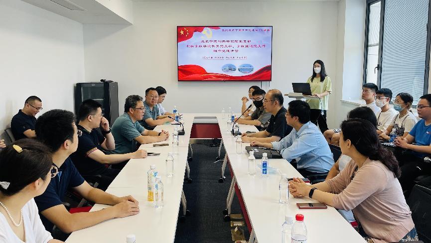 随后,在会议室召开了党建共建座谈交流,双方就支部建设、活动开展、科研合作、人才培养等方面进行了深入的沟通交流。大家一致认为,双方在党的建设领域有着诸多契合点,未来双方将充分利用好各自优势资源,以党建交流为引领,加强科研、人才、项目等方面的紧密合作,形成良好互动生态,努力开创党建工作“共建共促、资源共享、优势互补、共同发展”的良好局面。
